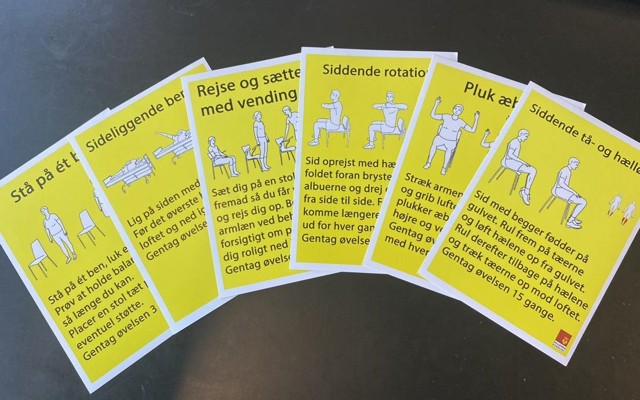 De har sammen med kolleger fra ”Uddannelse og Sundhedsfremme” udviklet et undervisningsprogram og træningssektionen i Sundhedscentret har lavet en række kort med ideer til at få lidt mere bevægelse ind i dagligdagen hos borgerne. Det er en række små øvelser, som man kan lave sammen, mens hjemmeplejen er på besøg.