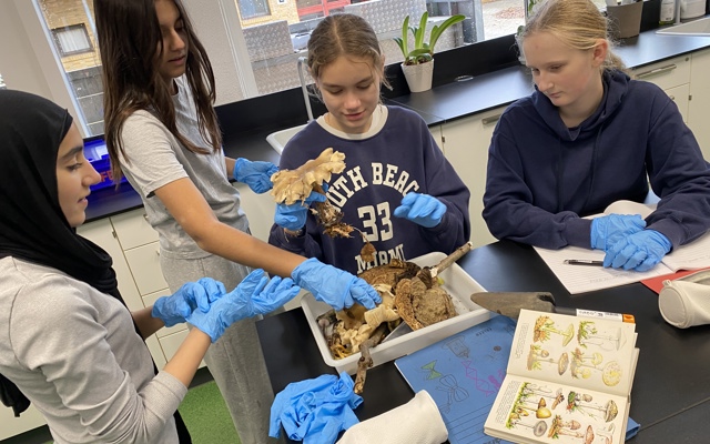 De to elever Zaynah og Lauge er i gruppe sammen. Begge er helt klar og kravler gerne ind mellem træer og buske for at finde de bedste steder langs en lille sø, hvor der gror mange forskellige slags svampe.