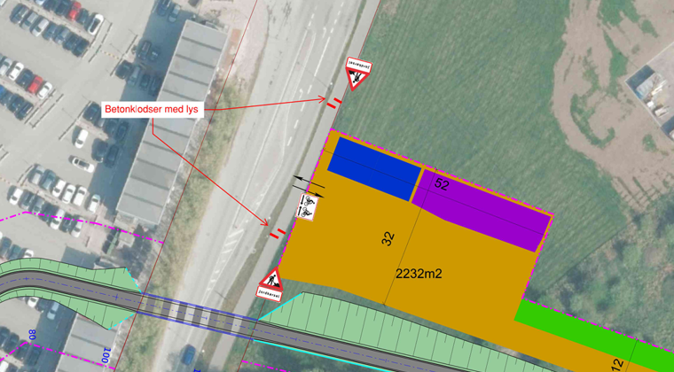 For at tage hånd om cyklister og gående, etables der cykelsluse før og efter adgangen til byggepladsen.