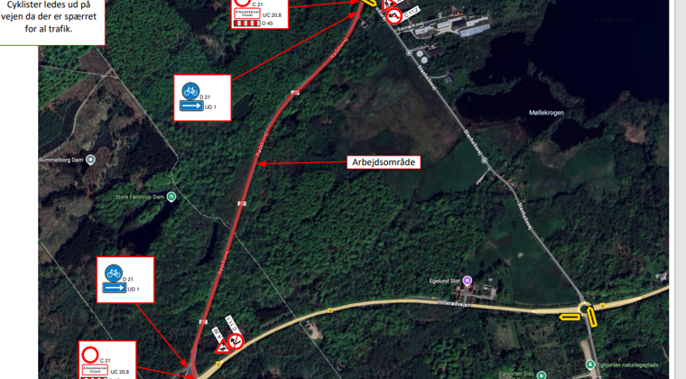 Det vil desværre ikke være muligt at anvende cykelstien imens der udføres asfaltarbejder, vi henviser til kørebanen.